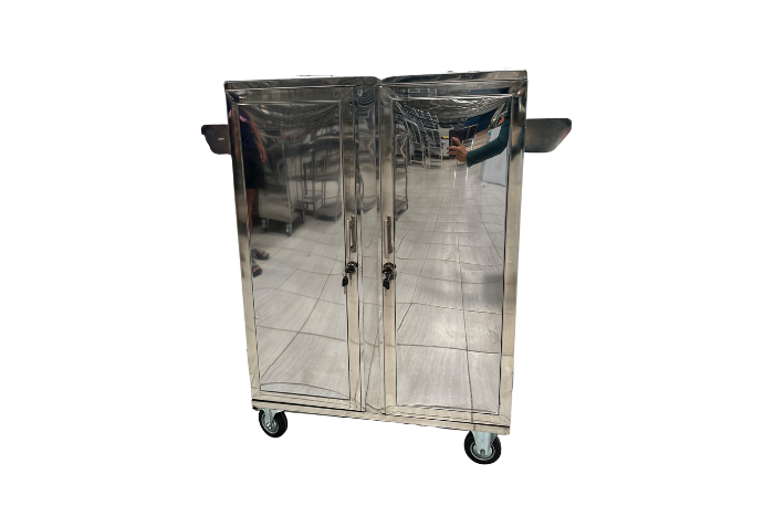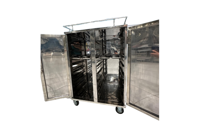 TROLLY FOOD / TROLLY MAKAN Spesifikasi: Dimensi P x L x T : 70 x 50 x 110 Cm Mateial : Stainless Steel Laci : 16 sursun Finishing : Polishing (SS) Roda : 4 Roda Beli via WhatsApp